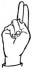 На ћирилици написано РАДНА РАНЂЕЛОВИЋ састоји се из 15 слова [?]. Исписано ћириличном једноручном азбуком за глувонеме: